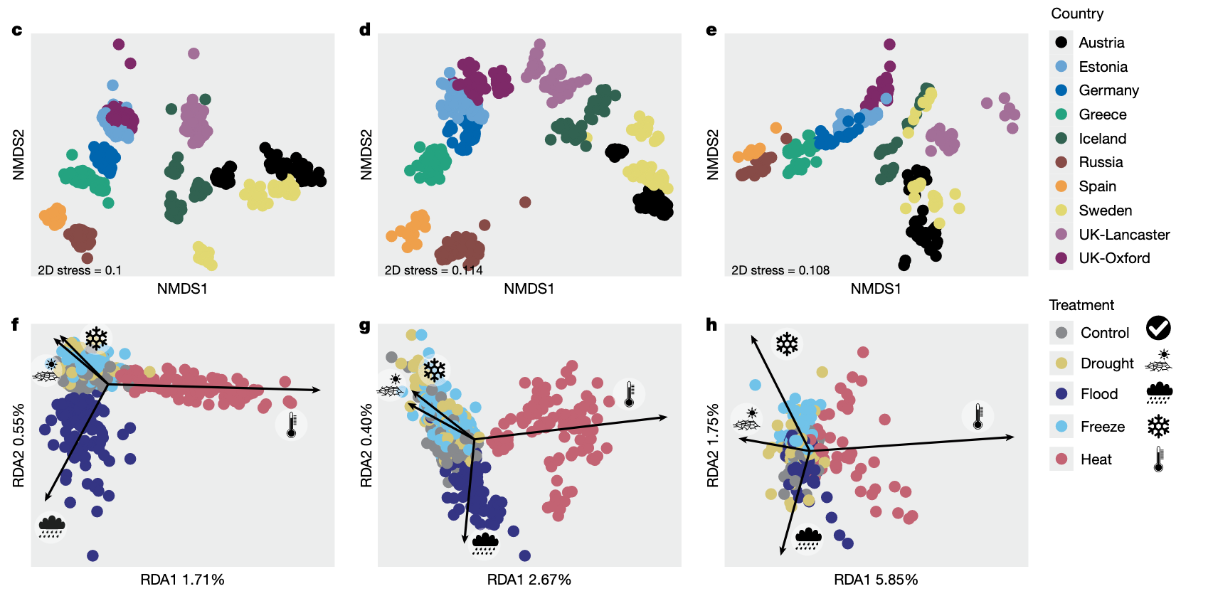 本研究首次在泛欧洲尺度上、通过统一设计系统考察土壤微生物群落对极端气候事件的响应,揭示出如下关键发现: