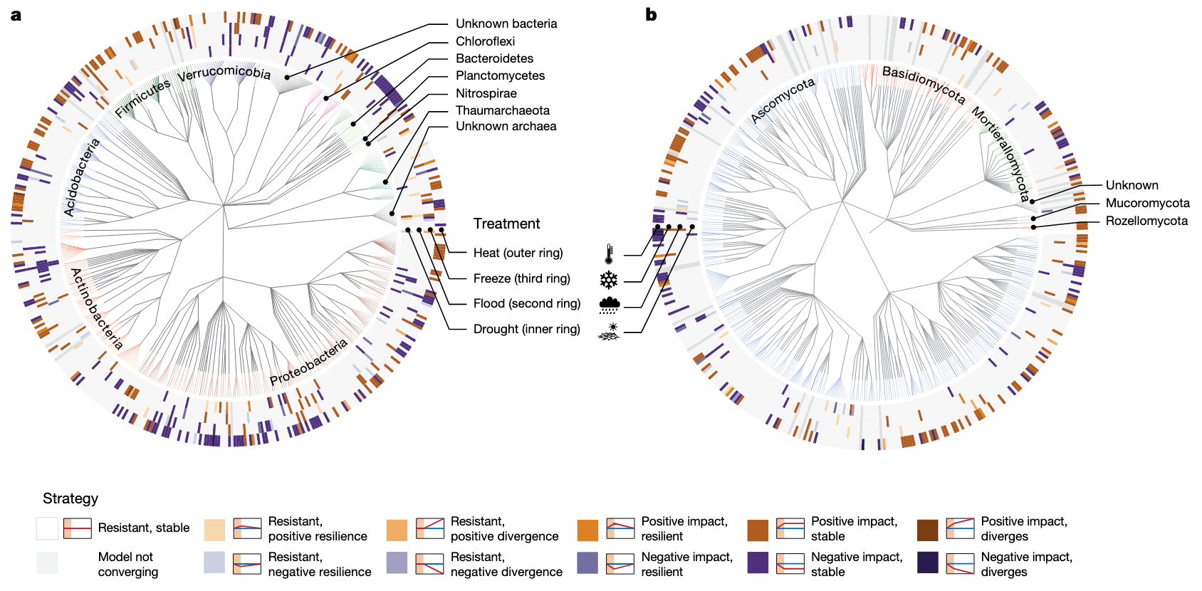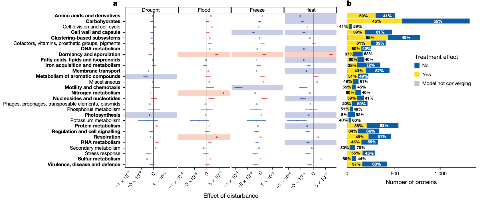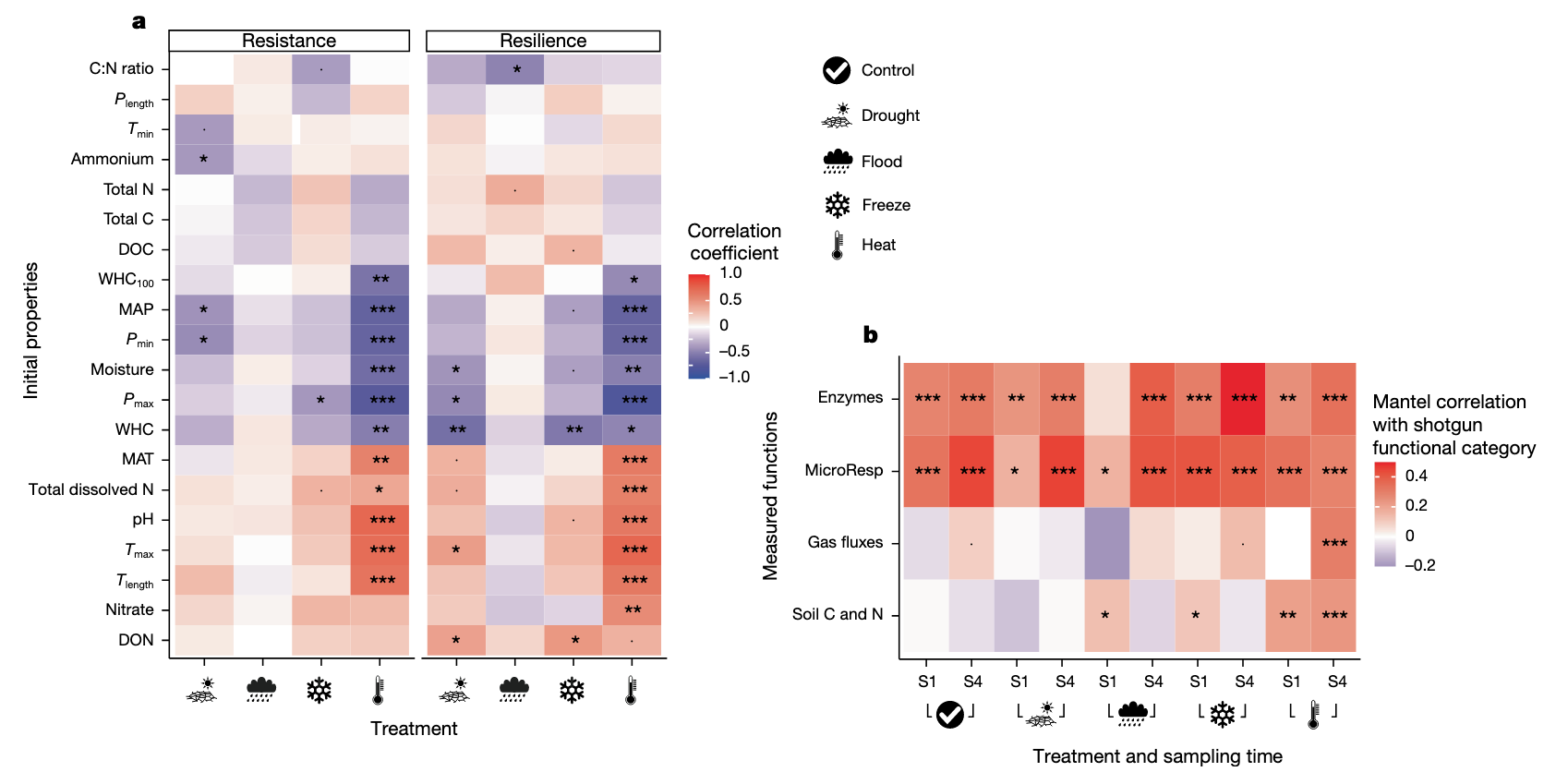 - Knight, C.G., Nicolitch, O., Griffiths, R.I., Goodall, T., Jones, B., Weser, C., Langridge, H., Davison, J., Dellavalle, A., Eisenhauer, N., et al. (2024). Soil microbiomes show consistent and predictable responses to extreme events. Nature 636, 690–696. https://doi.org/10.1038/s41586-024-08185-3.