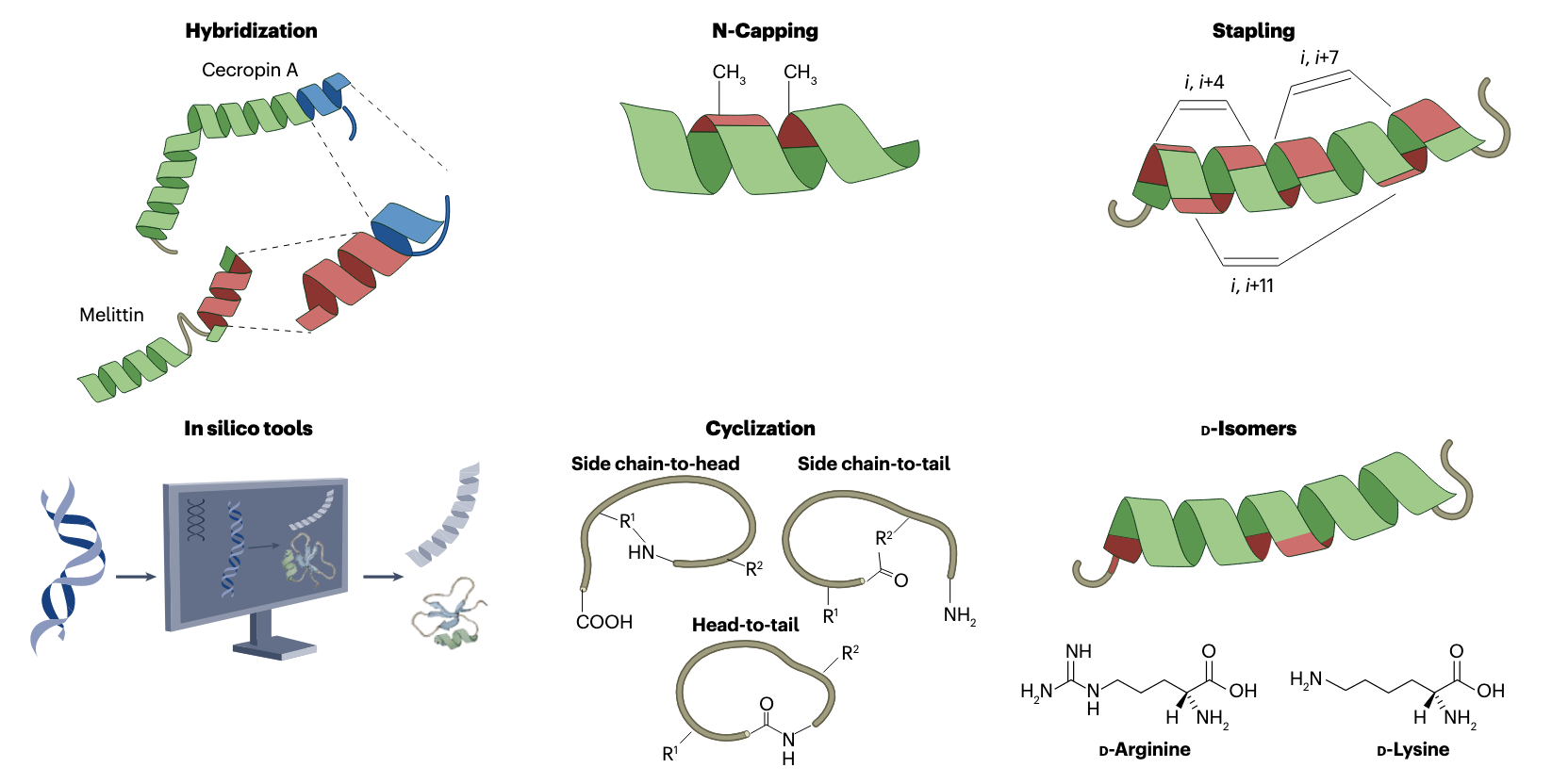 为了提高抗菌肽的活性、稳定性,降低毒副作用,并克服耐药性,研究人员开发了多种设计与优化策略:
