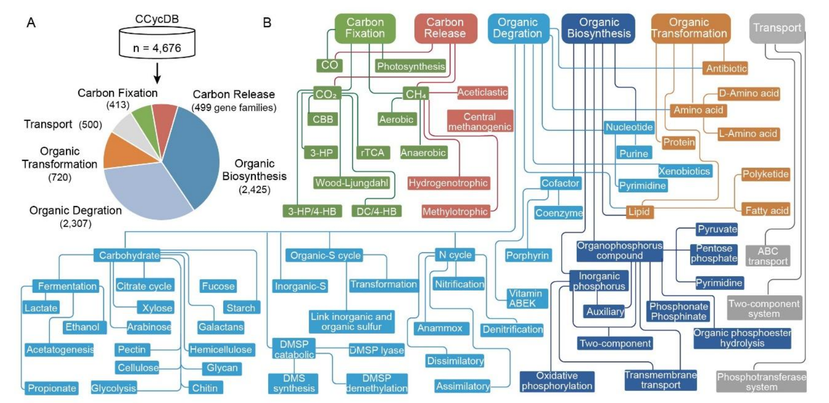 CCycDB包含4676个基因家族,划分为六大功能类别: