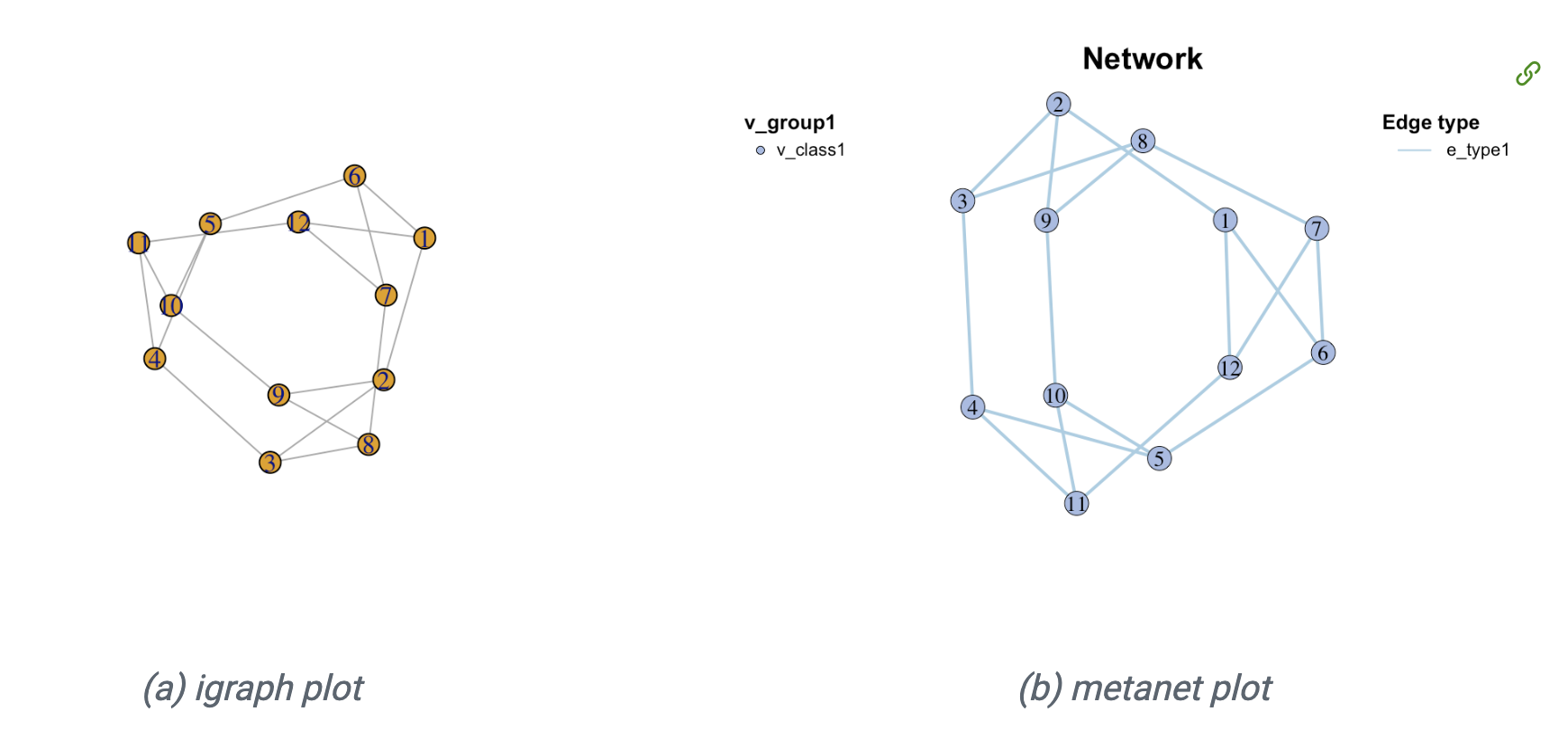轻松获得网络(metanet对象,继承自igraph对象)。一些常见属性会自动设置。