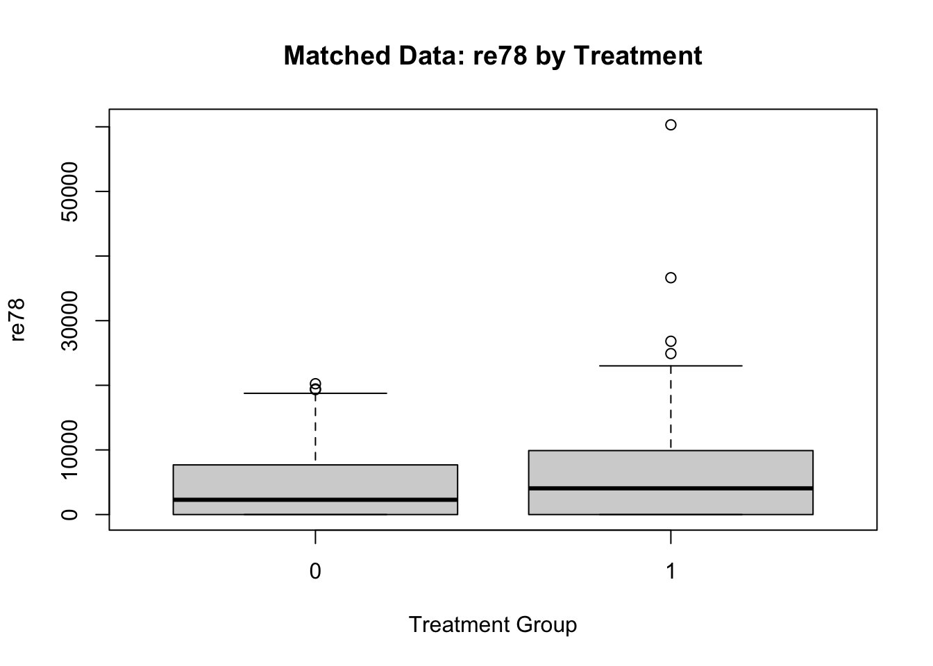在匹配后的平衡样本上,比较处理组和对照组的结局变量差异:
