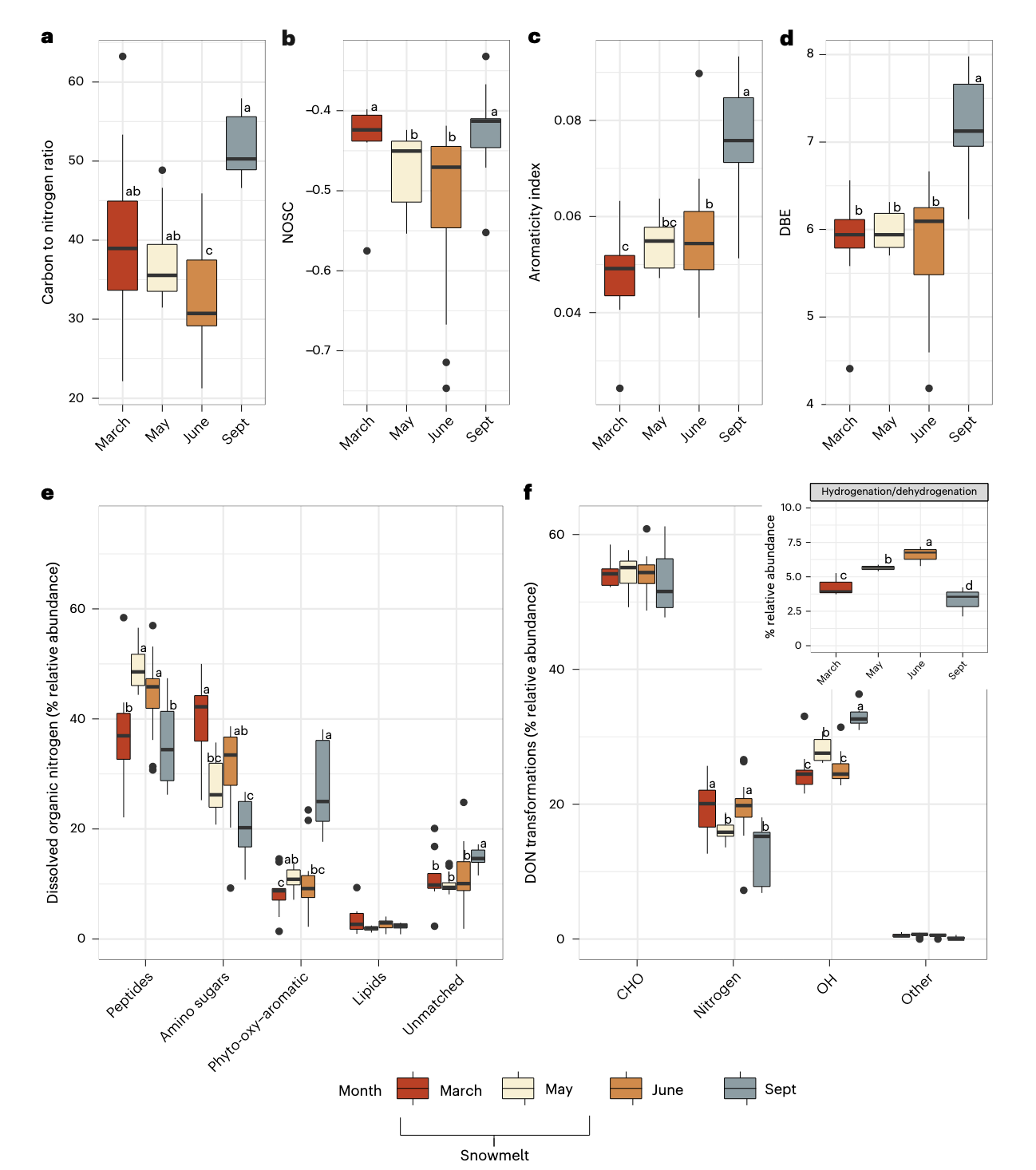 溶解有机氮在融雪期间和之后变得更芳香化