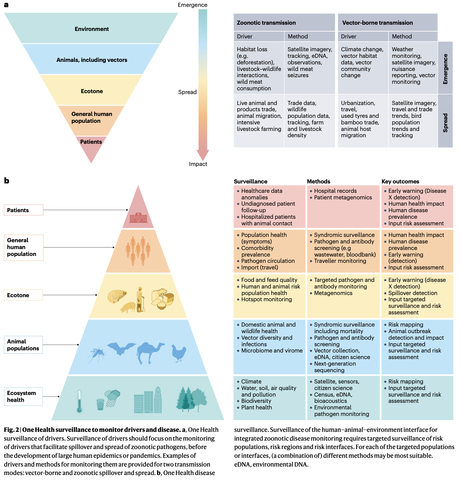 用于数据收集和监测的创新方法有助于理解同一健康三元体的所有组成部分,这些部分可能影响溢出事件和疾病出现。此外,许多驱动因素本质上是人为的,这也为调整我们当前的行为及其对人类、动物和环境健康的影响提供了机会,从而预防新的大流行。不同驱动因素之间复杂的相互作用因地区而异,这使得当地的伙伴关系和量身定制的优先事项设定至关重要。